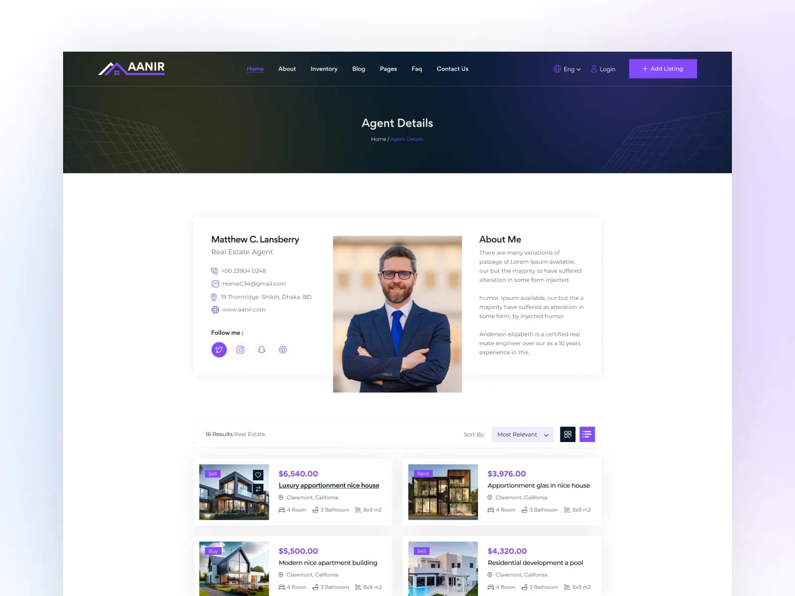 Aanir is a premium real estate property listing theme crafted specifically for the aDirectory plugin. It’s the ideal choice for real estate agencies, property developers, and realtors looking to create a sleek, professional, and user-friendly property directory website.